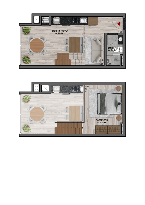 - Área privativa 39,57m²